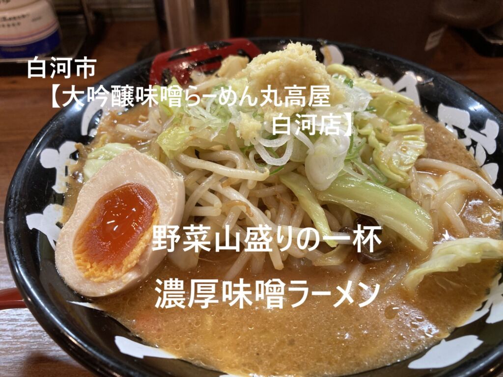 白河市【丸高屋 白河店】野菜山盛りの濃厚味噌、大吟醸野菜味噌らーめん