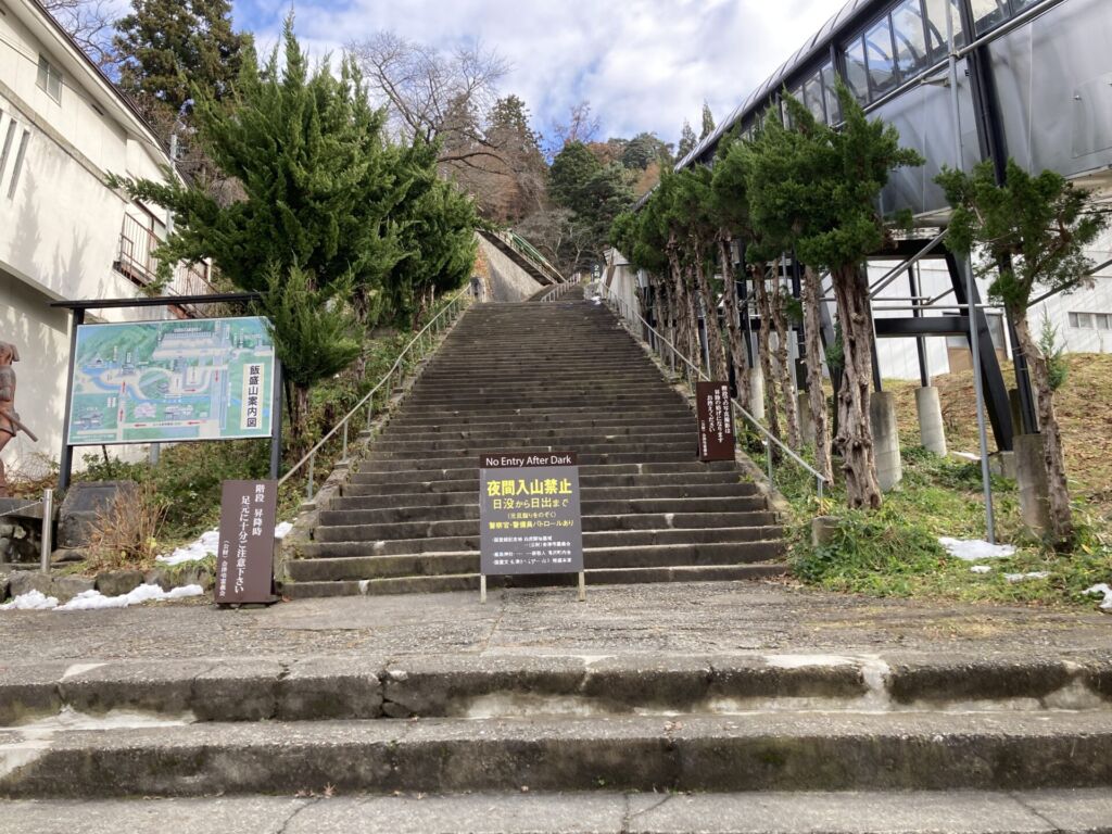 飯盛山を登るルートのひとつが、入口正面の階段を上がるルート。