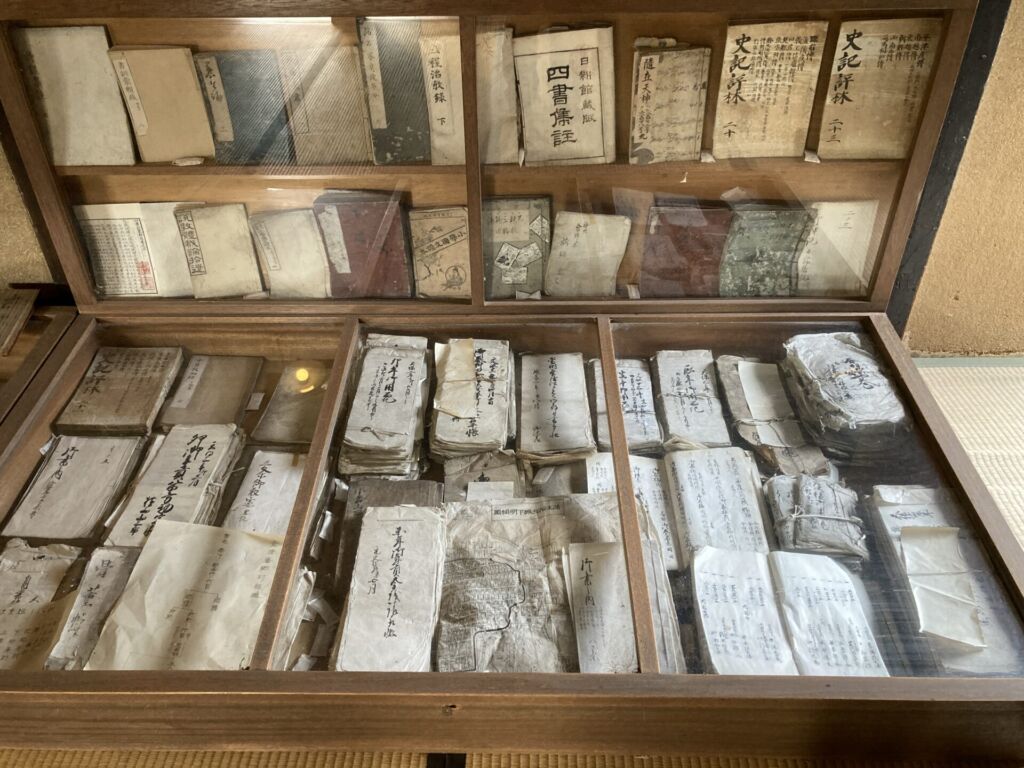 館内には古い書物や書き物も多く保管されており、なかには天保3年の日付が記されたものも確認できます。