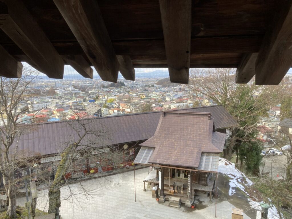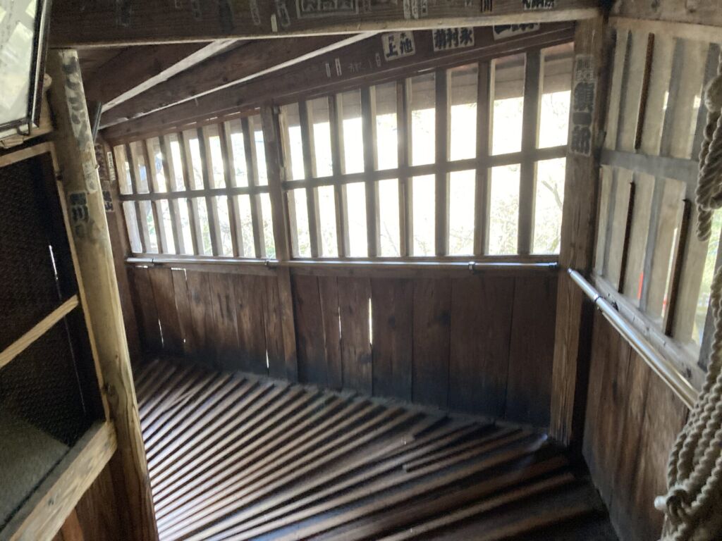 堂内最上部からは、すぐそばに建つ宇賀神堂の姿が見えます。