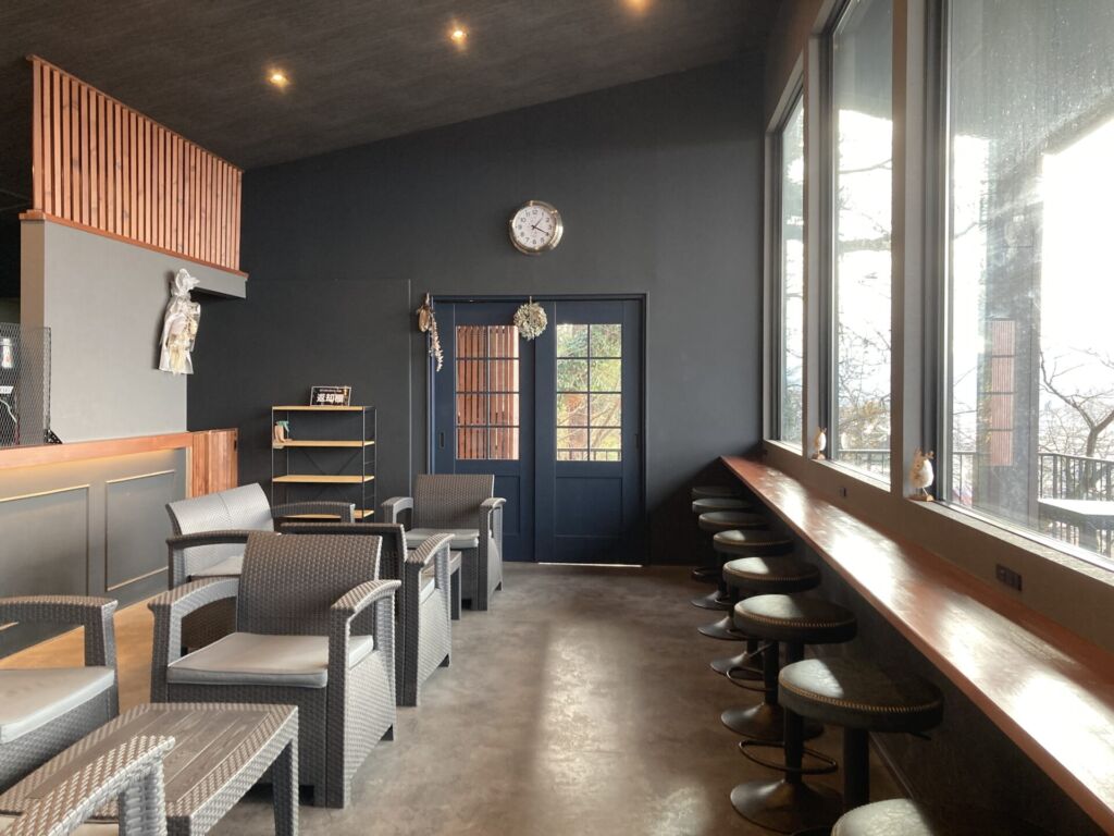 山主飯盛本店にはカフェも併設されており、飯盛山の景観を眺めながら休憩することもできます。
