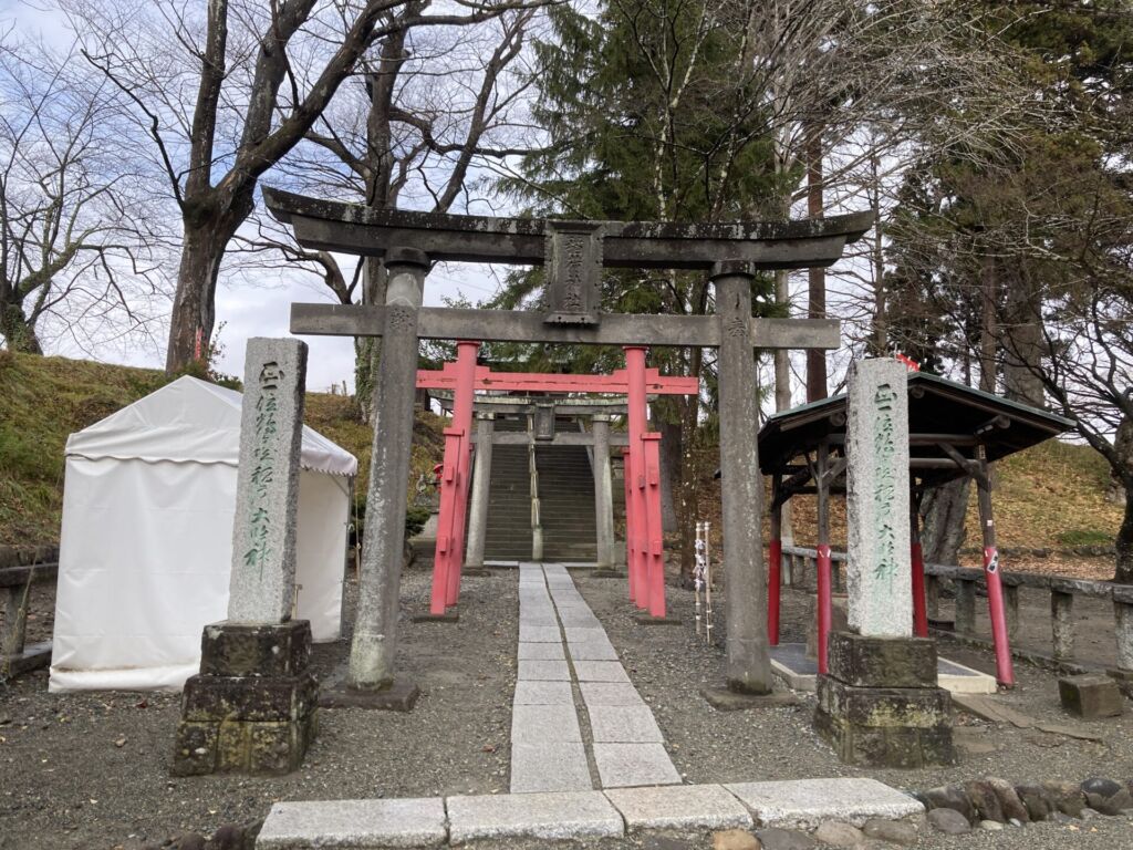 御朱印は、鶴ヶ城から車で約10分の場所にある 蠶養國神社 で拝受できます。