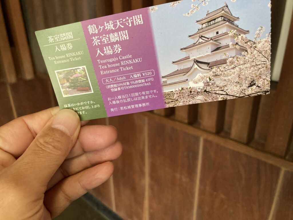 なお、筆者は鶴ヶ城天守閣との共通券(520円)を利用しましたが、茶室麟閣のみの入場券(210円)も用意されています。
