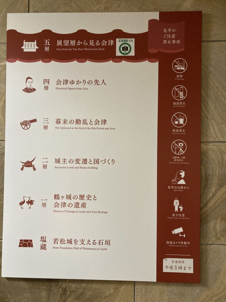 飯盛山から鶴ヶ城へ訪れたこともあり、展示内容や景色を含め、見応えのある天守閣でした。