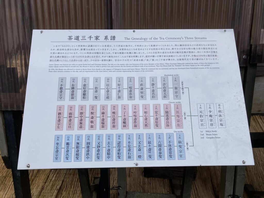 少庵の子・ 千宗旦 によって茶道は受け継がれ、宗左・宗室・宗守の三人の孫によって、表千家・裏千家・武者小路千家の三千家が興されます。