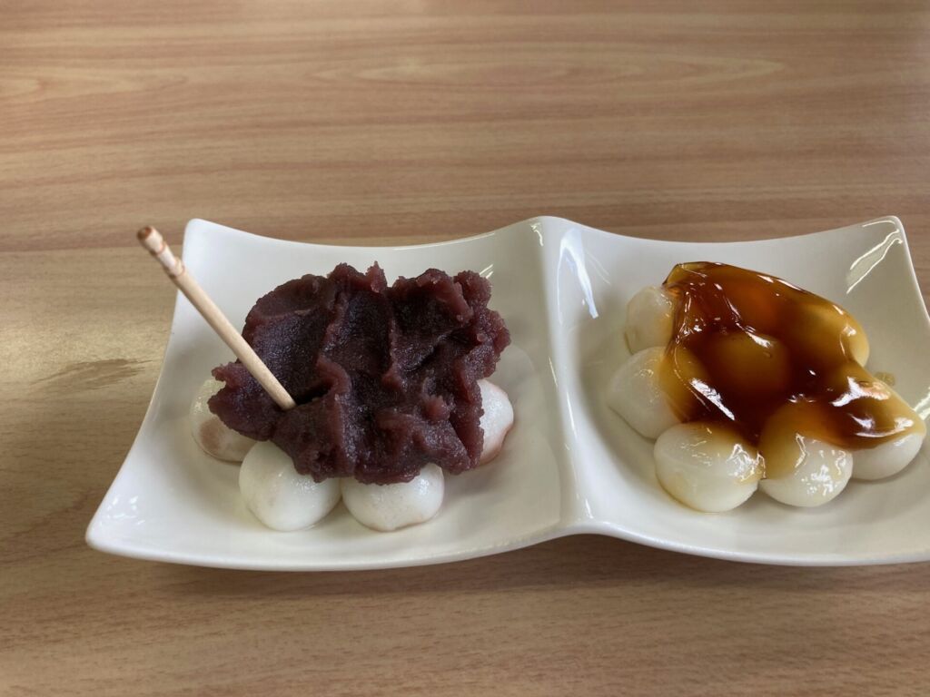 通常串に3個ほど刺して食べるだんごですが、南湖だんごは爪楊枝で食べるスタイルです。