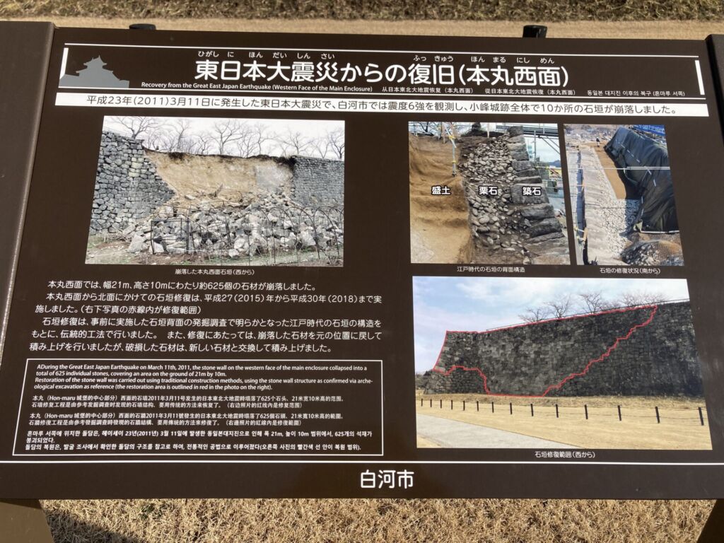 2011年(平成23年)の東日本大震災では、石垣が10か所にわたり崩落する被害を受けました。
