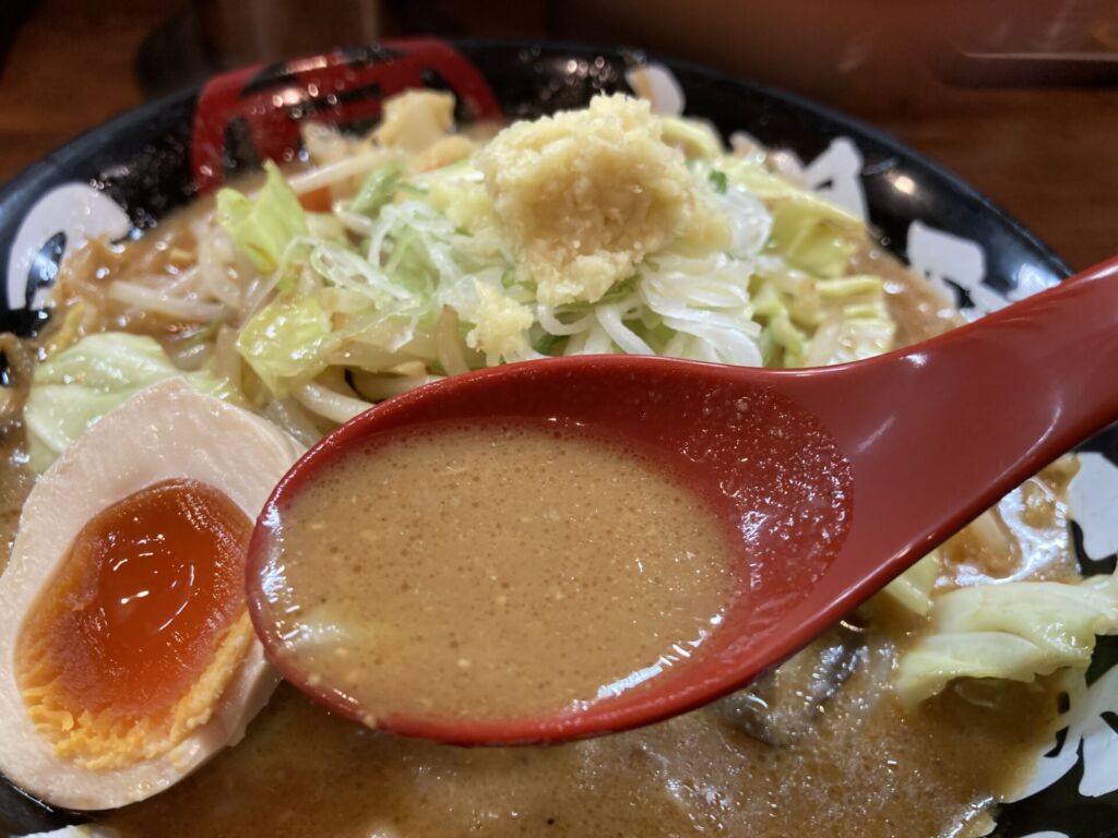 実際に食べてみると、山盛りの野菜と濃厚な味噌スープの組み合わせは想像以上に満足感があります。