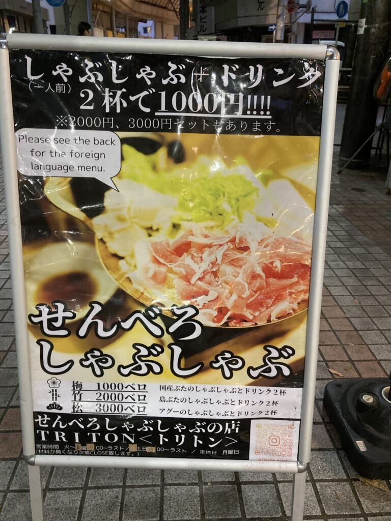 平和通り沿いにあるせんべろ しゃぶしゃぶTORITON。