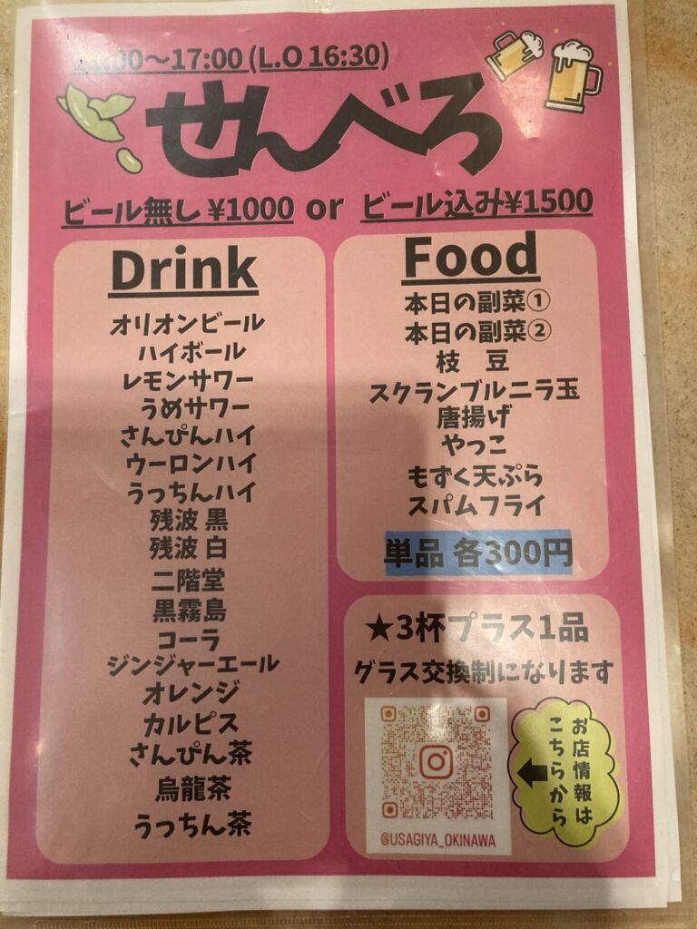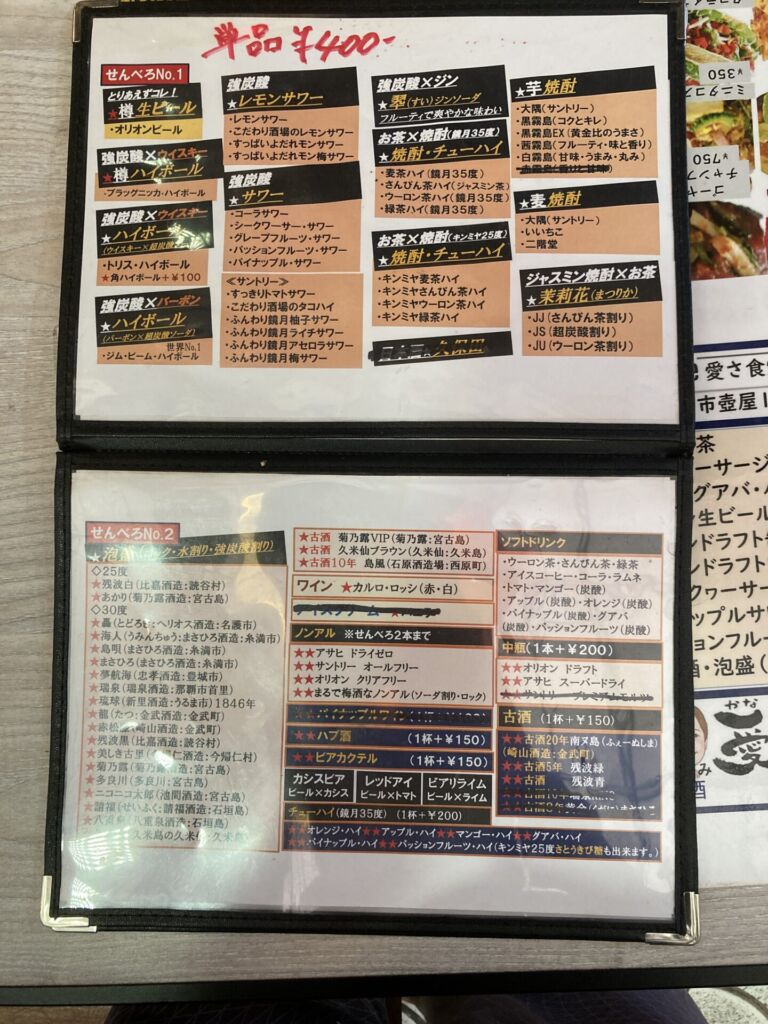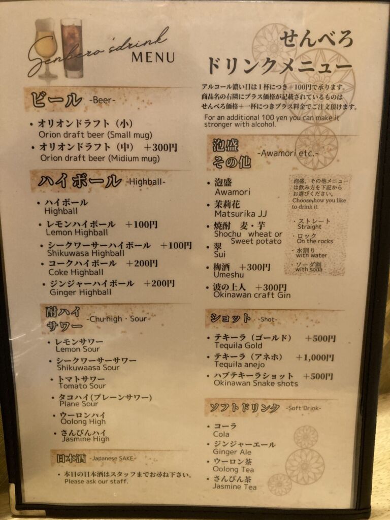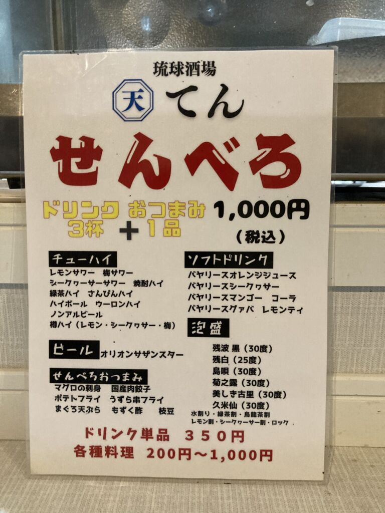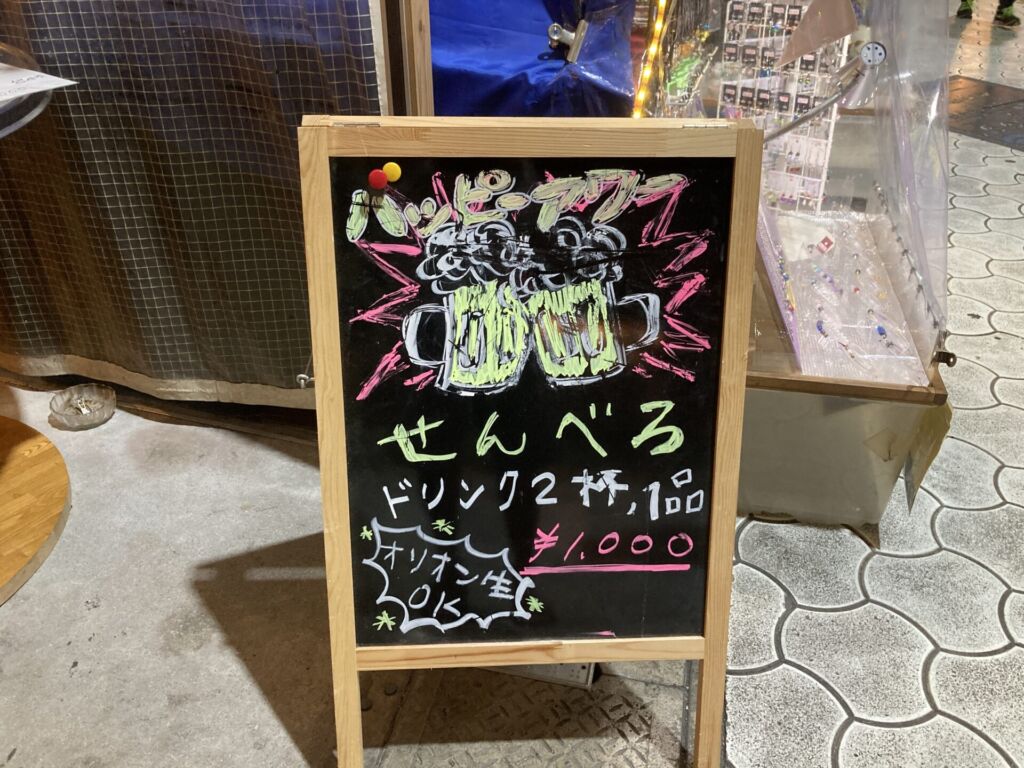 ビールを含める場合は1,500円となり、泡盛やサワー類が1,000円せんべろの対象です。
