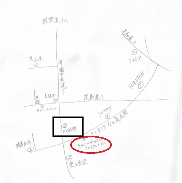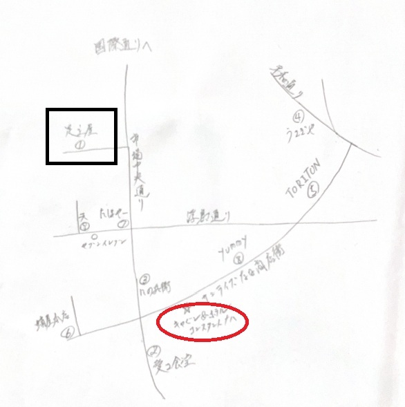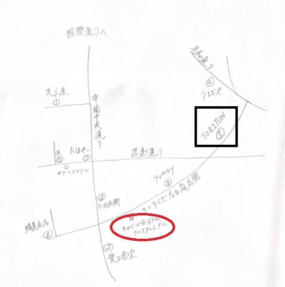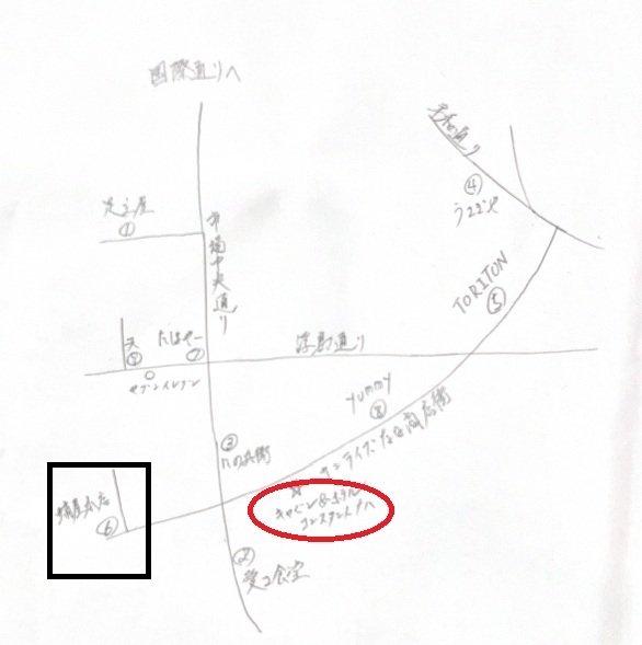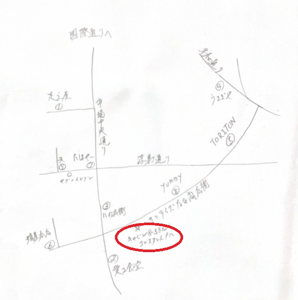 宿泊したホテルと9軒の位置関係をまとめたもの。