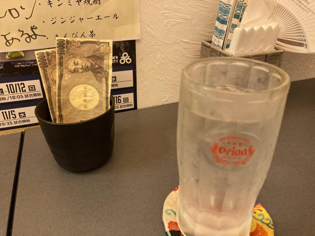 せんべろだけで会計をしようとしたところ、店の方から「今日は早いね」と声をかけられました。