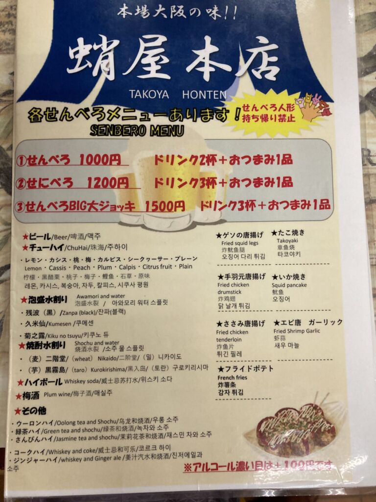 蛸屋本店はたこ焼きや粉ものを合わせて楽しめるせんべろとして、利用しやすい一軒でした。