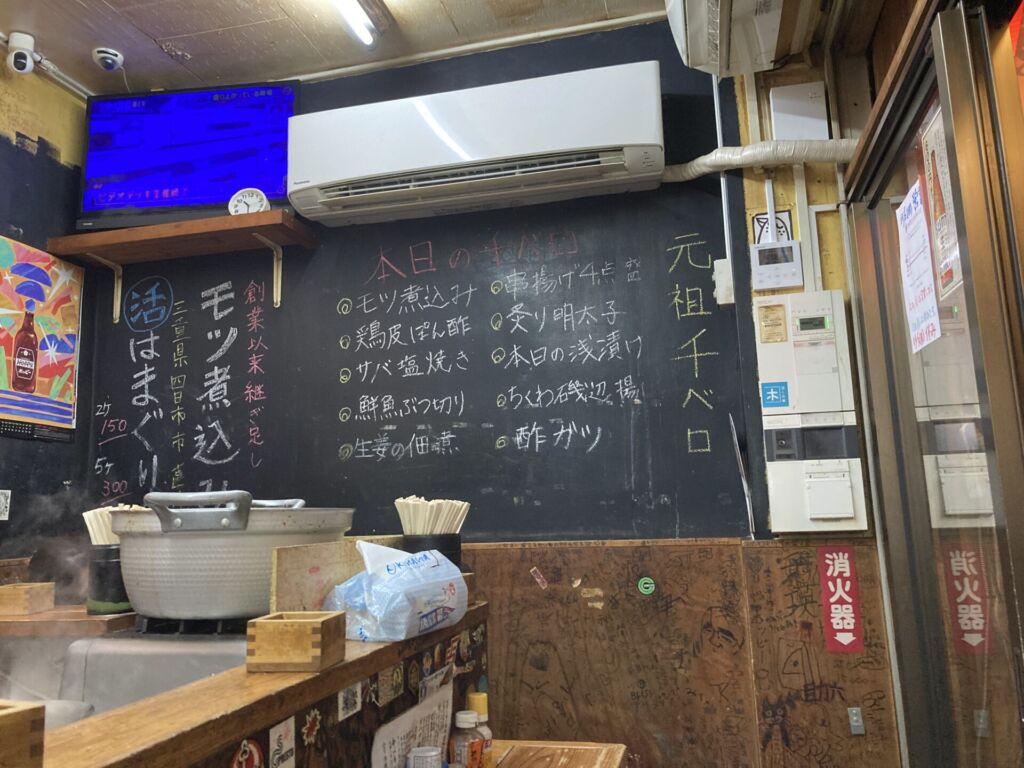 筆者は、創業以来継ぎ足しというモツ煮込みを選び、泡盛「龍」の水割りでせんべろを今回のせんべろ巡りをスタートしました。