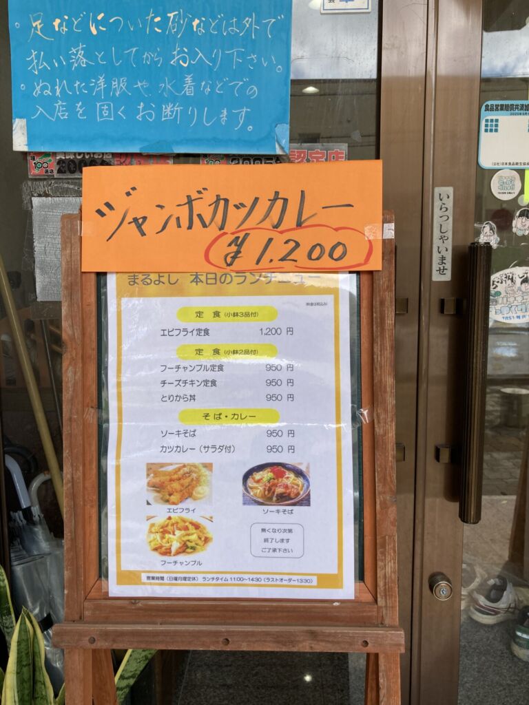 店頭の看板には、手書きで「ジャンボカツカレー(1,200円)」の文字。