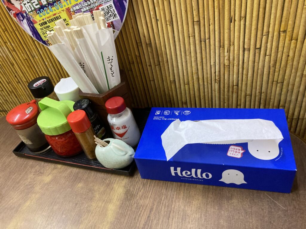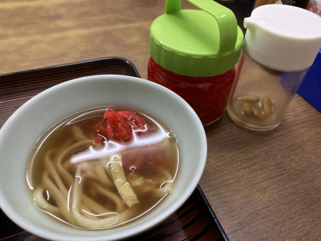 卓上装備として、置いてある紅しょうがとコーレーグースを加えて、沖縄そばを楽しみます。