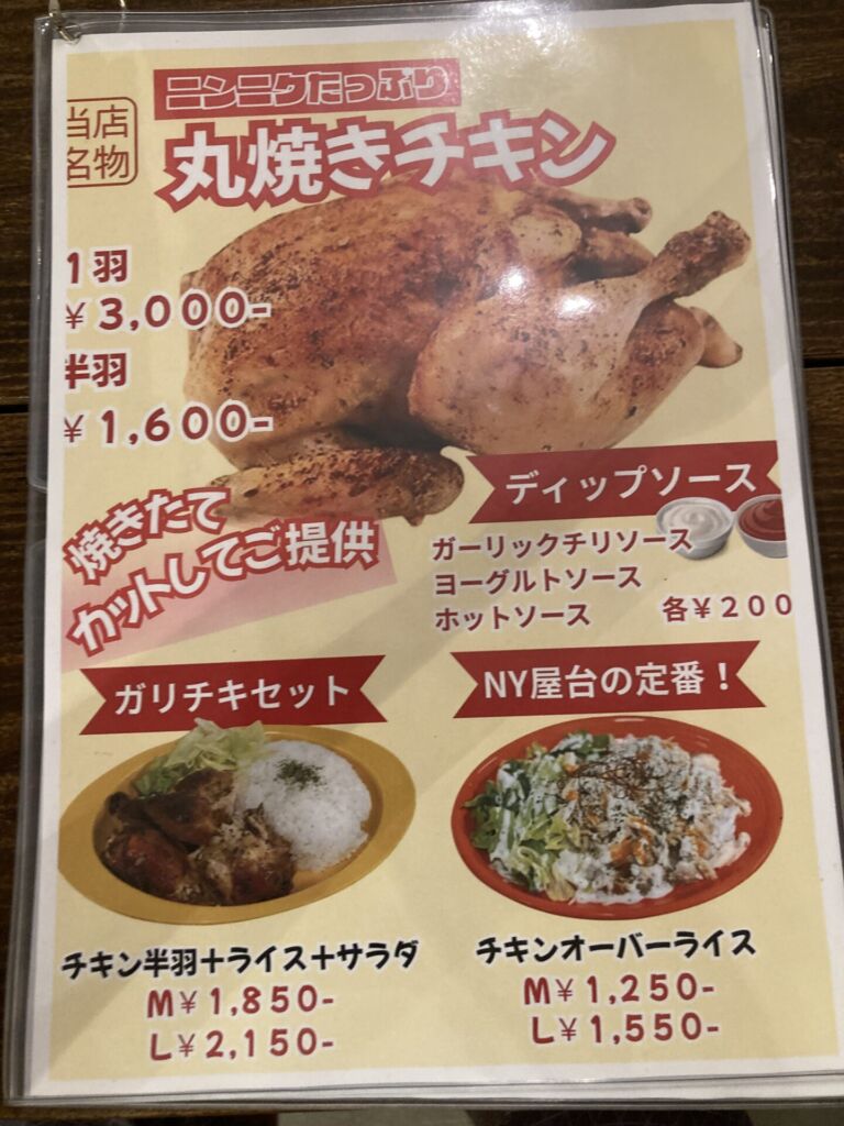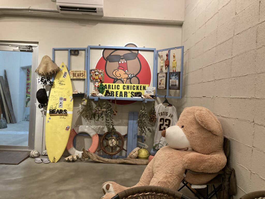 「ベアーズ」では、名物の丸焼きチキンをはじめ、タコライスやガーリックチャーハンなど、しっかり食べたい人にうれしいメニューがそろいます。