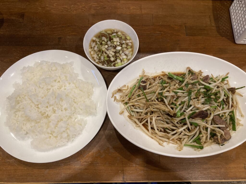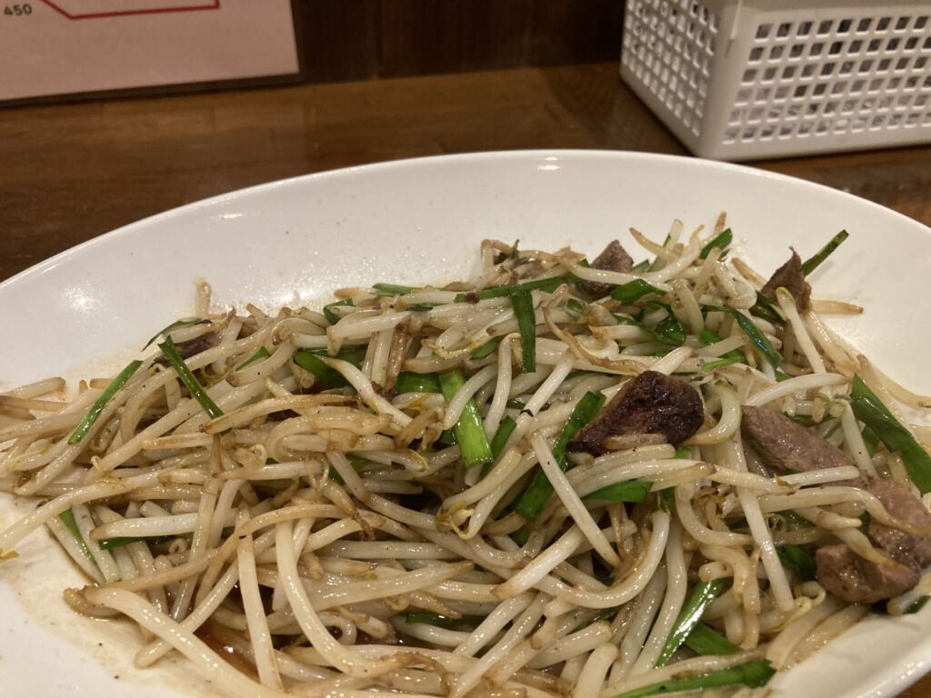 レバーはほどよくやわらかく、にらともやしの歯ごたえがアクセントになっています。