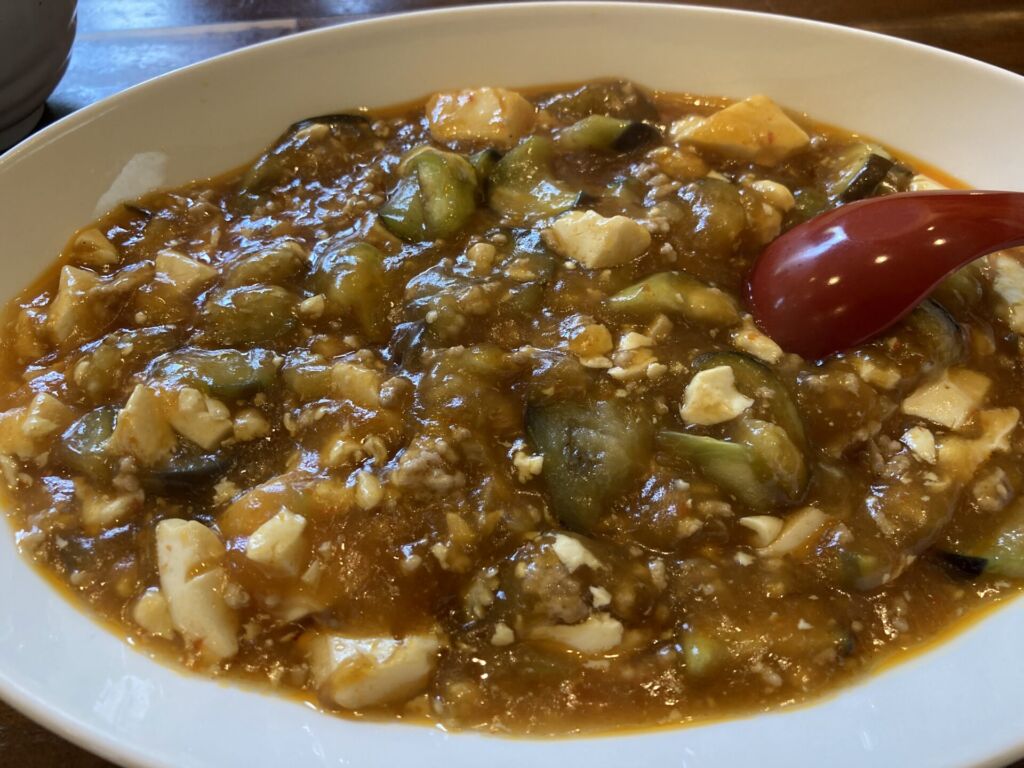 火の通ったなすに、挽き肉入りのみそベースのあんが絡む一皿。