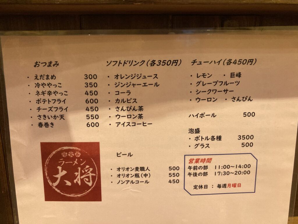 筆者は2025年6月〜10月の滞在中に、昼夜あわせて何度か「ラーメン大将」を訪れました。