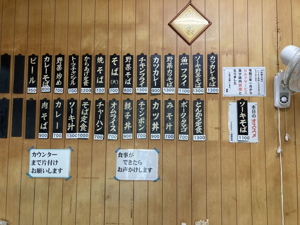 看板は色あせていますが、それもまた地元の食堂らしい味わいです。