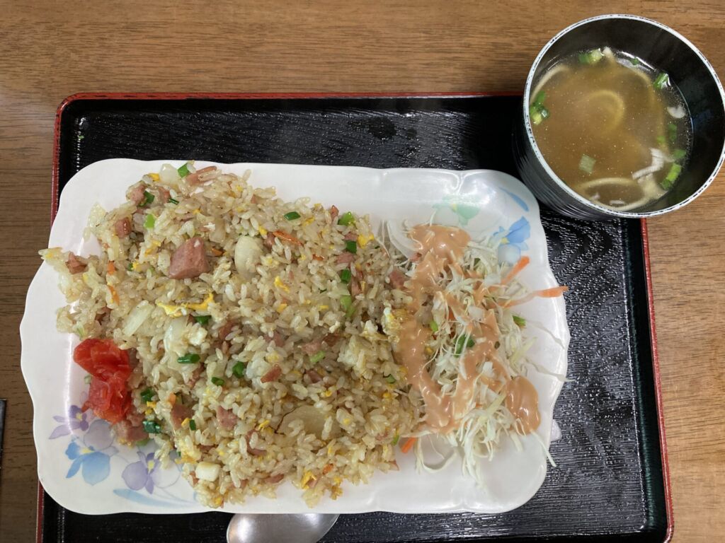 スパムや卵、ネギが入った王道のチャーハン。