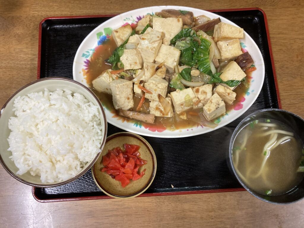 豆腐、白菜、卵、野菜が入り、軽いチャンプルーのような食べ応え。