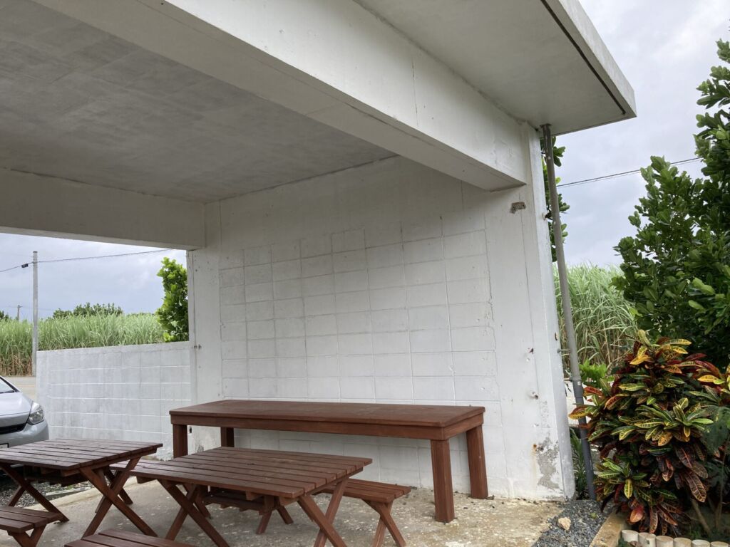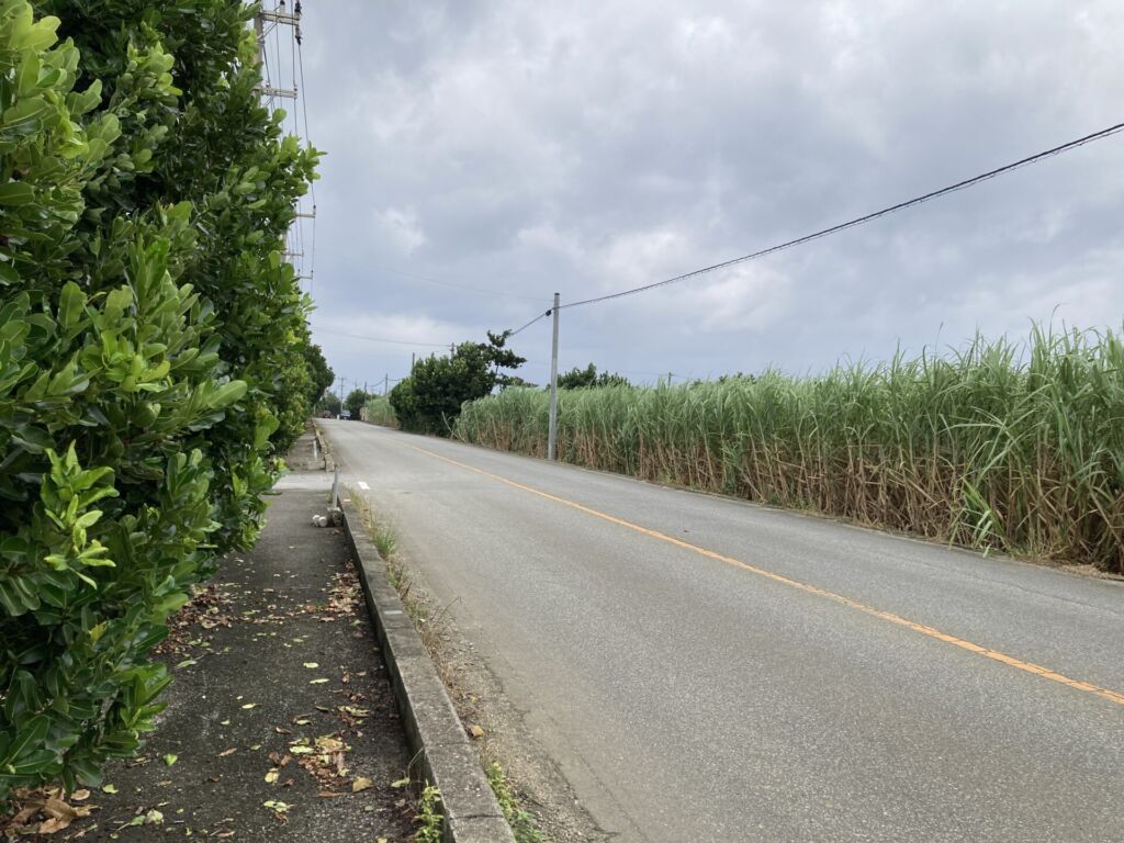 宮古島市平良の郊外エリア、サトウキビ畑が広がる道沿いにある「まっすぐ」。