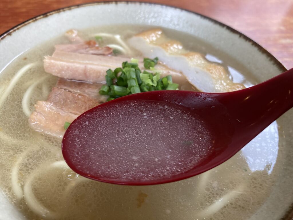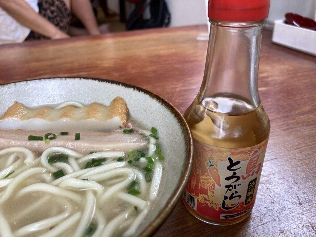 途中で卓上のコーレーグースを数滴たらすと、ピリッとした辛味が加わり、スープの甘みがより際立ちます。