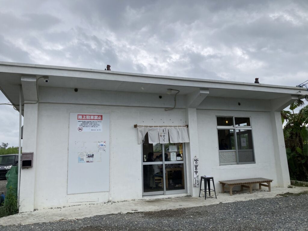 宮古島市平良の郊外、サトウキビ畑が広がる静かな道沿いに建つ食堂「まっすぐ」。