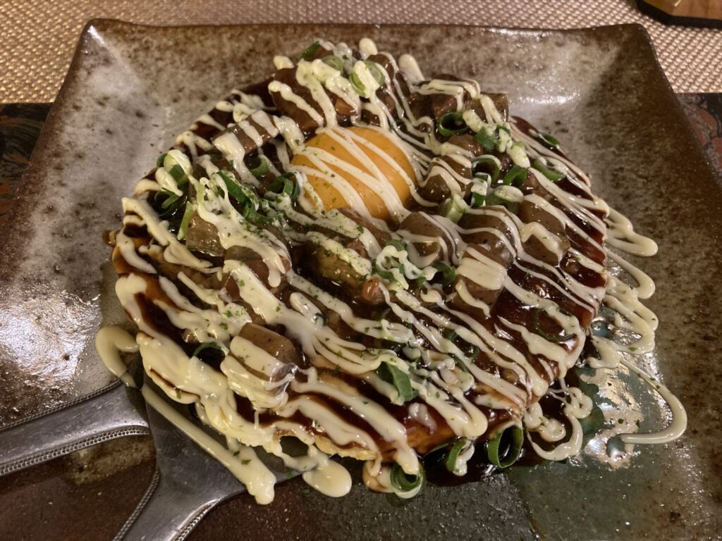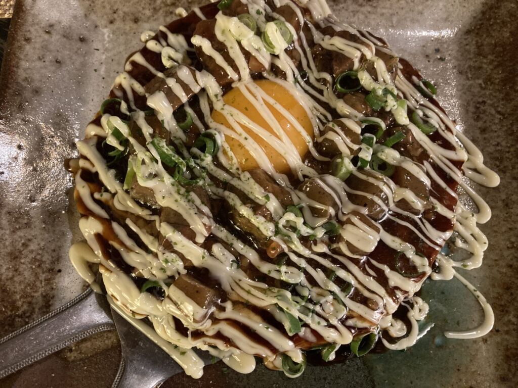 特に印象に残ったのは、卵黄を合わせた牛すじお好み焼き。