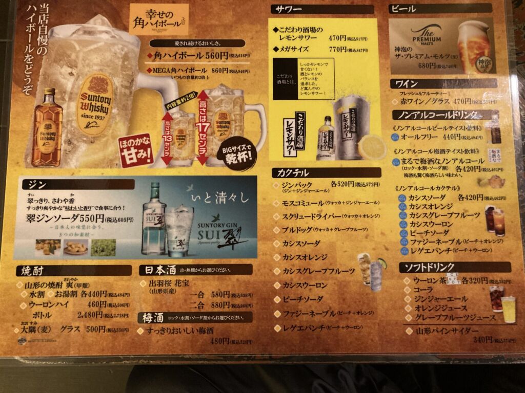 ドリンクは、日本酒や焼酎は地元山形の銘柄。